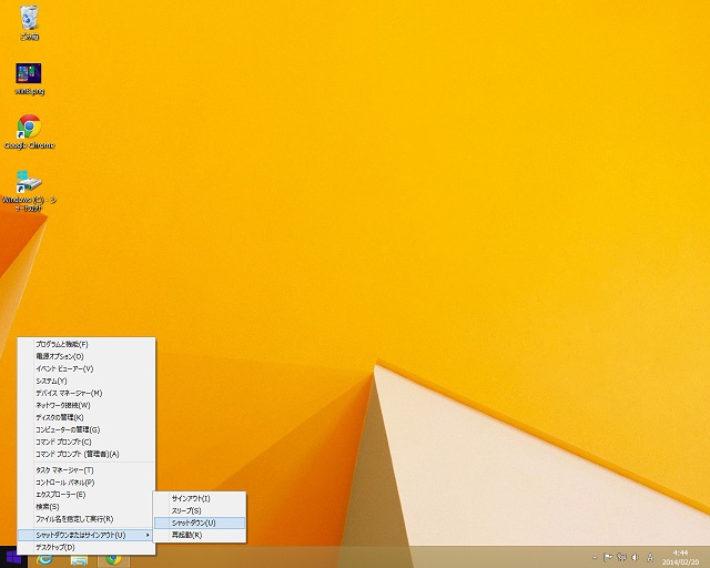 シャットダウンを押して終了できました