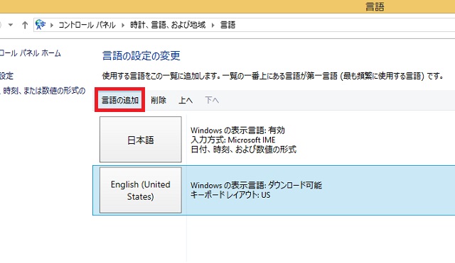 [時計、言語、および地域]-[言語]から、詳細設定をクリック