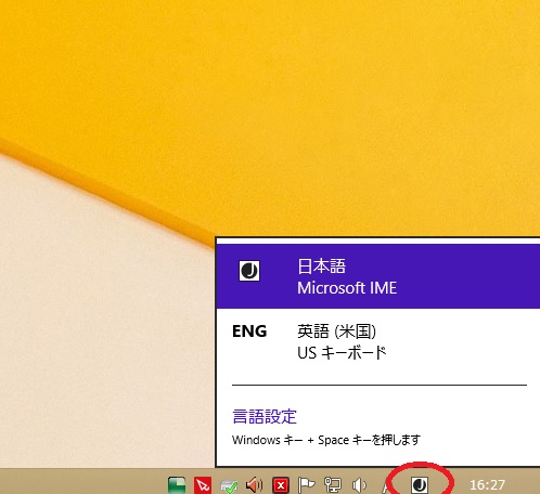 デスクトップ画面の右下から、キーボードの言語設定を変更する