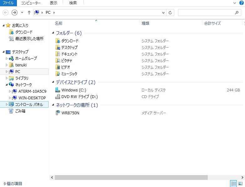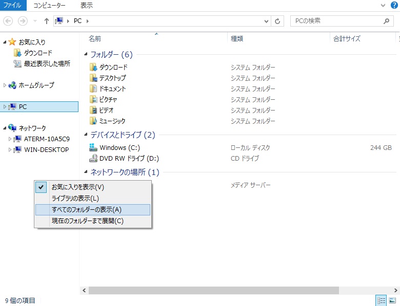 [すべてのフォルダーを表示]をクリックし、[コントロールパネル]を表示します